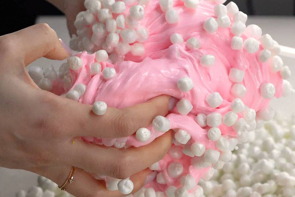 La elaboración con Maicena le da un toque más esponjoso y suave, esta consistencia es conocida como slime fluffy